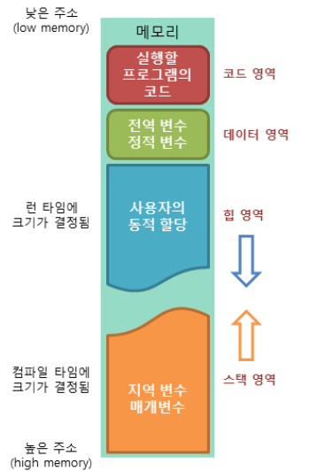 메모리의 힙(heap) 영역은 사용자가 직접 관리할 수 있는 '그리고 해야만 하는' 메모리 영역입니다.